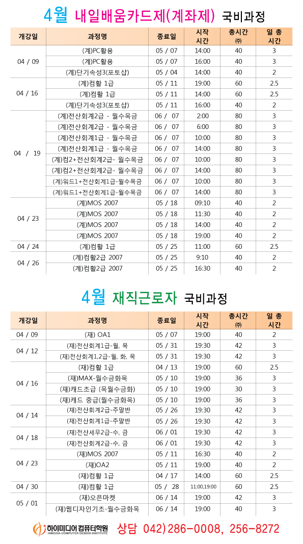 [정규개강]2012년 4월 개강일정입니다.(대전캠퍼스)