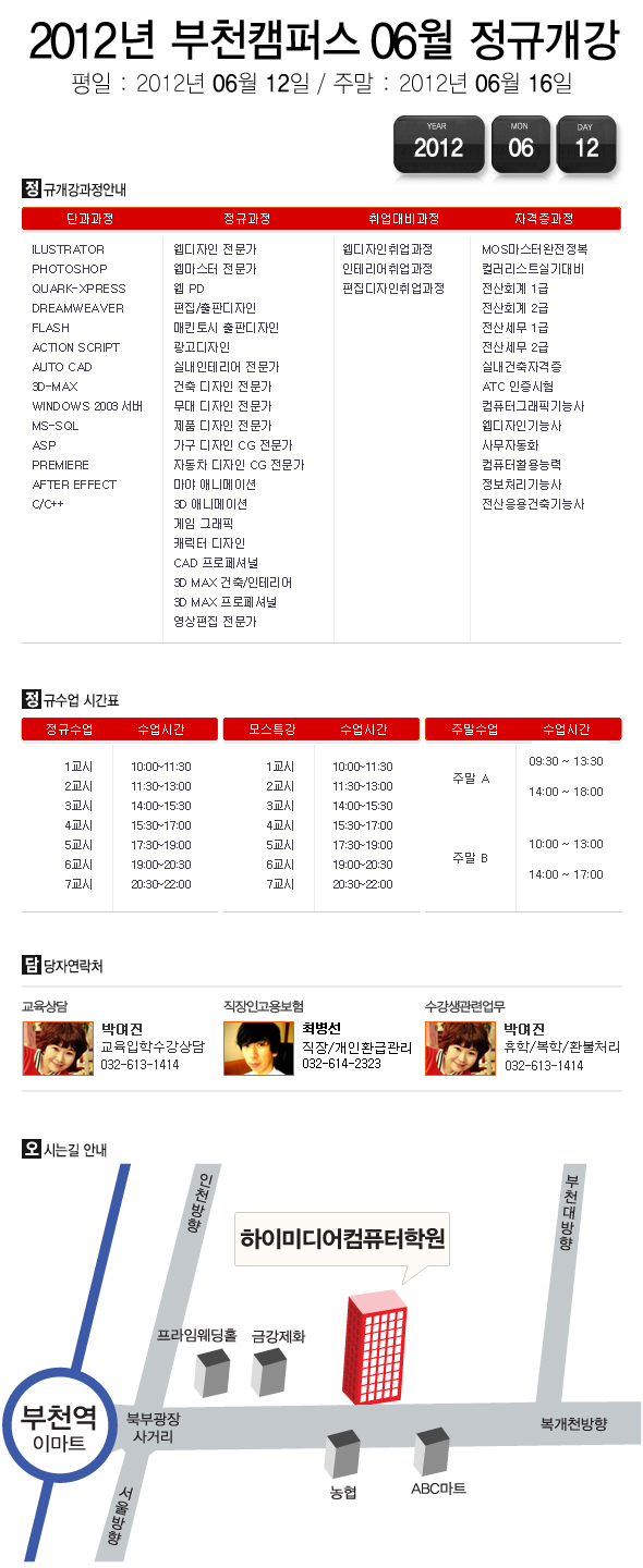 [정규개강] 2012년 06월 부천캠퍼스 개강안내